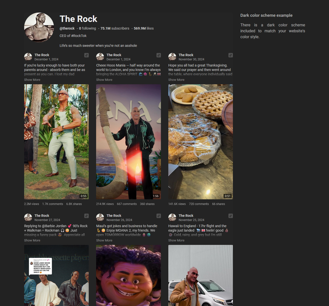 - Customizable Layouts: Tailor the appearance of the TikTok videos display to seamlessly match your website's design and layout. Choose from various color schemes and styling options to create a cohesive visual experience for your visitors.